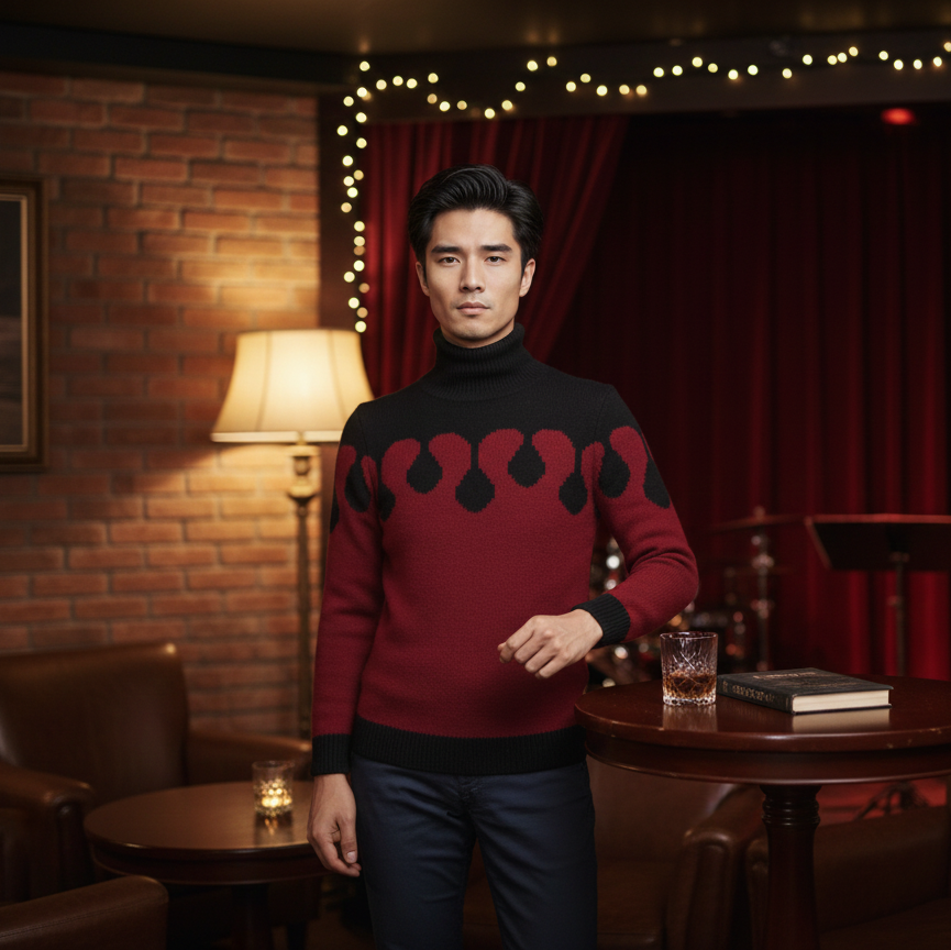 Unique a red, skin-tight anime turtleneck sweater with black ink markings that resemble dripping blood around the shoulders and chest. Step into the world of Demon Slayer: Kimetsu no Yaiba with this unique knit douma sweater inspired by the formidable Upper Rank Two, Douma (or Doma). This piece is a must-have for serious fansdouma inspired outfit , offering the perfect blend of cosplay authenticity and everyday style.